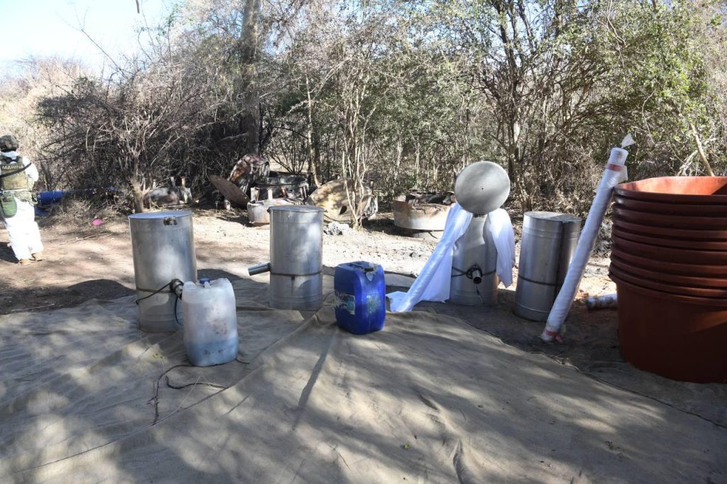 En compañía de José Rafael Ojeda Durán, secretario de Marina, el mandatario estatal se apersonó en el sitio, donde destacó que con el aseguramiento del laboratorio ubicado en la comunidad de Rancho Viejo, municipio de Quiriego, se brinda un duro golpe al crimen organizado, al cortar el flujo financiero que operan en la zona y en consecuencia reducen su capacidad operativa.