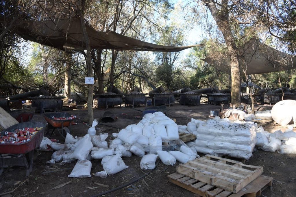 En el sitio se aseguraron 35 mil 250 kilogramos de producto terminado y 5 mil 705 kilogramos de sustancias químicas que producirían un total de 40 mil 955 kilogramos de metanfetamina. También se encontraron 8 mil 150 litros de precursor fabricado, 46 mil 800 litros de químicos esenciales, 9 mil 250 litros y 44 mil 496 kilogramos de sustancias de uso dual.