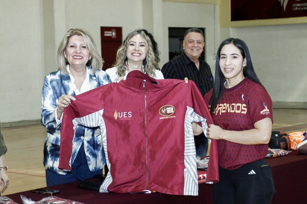 En representación de la rectora Martha Patricia Patiño Fierro, la secretaria técnica de la UES, Eloisa Flores García, dirigió un mensaje a los 72 estudiantes que representarán a la universidad en ocho disciplinas deportivas, exhortándolos a competir con entrega y a portar con honor los valores institucionales.