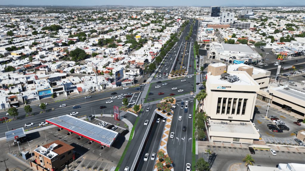 •Incluye la modernización de 3 cruces semaforizados, en las intersecciones del bulevar Colosio con el bulevar Solidaridad y el cruce de esta misma rúa con las calles Real del Arco Norte y Real del Arco Sur, lo que incluirá la renovación de estructuras y luces, así como la colocación de semáforos peatonales.