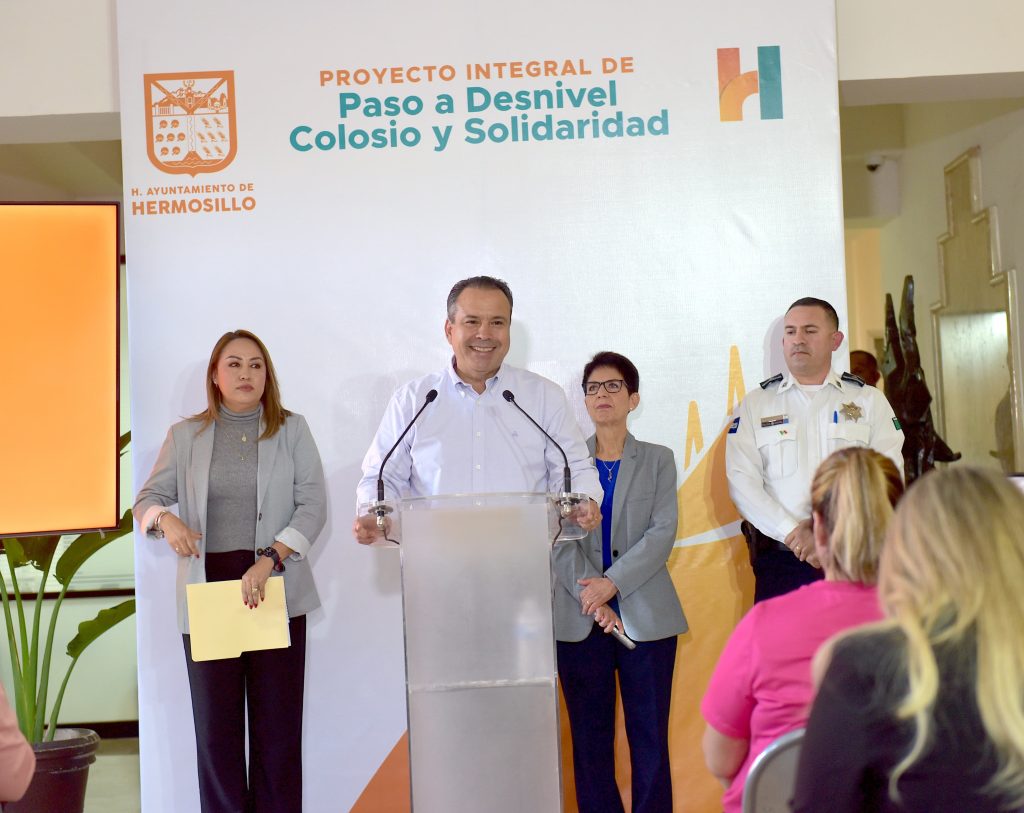 Hermosillo, Sonora, noviembre, 2024.- La construcción a partir del 2 de enero próximo de un paso a desnivel en el cruce de los bulevares Colosio y Solidaridad, que se financiará con un recurso municipal de aproximadamente 400 millones de pesos sin endeudar a la ciudad, anunció el presidente municipal Antonio Astiazarán Gutiérrez.