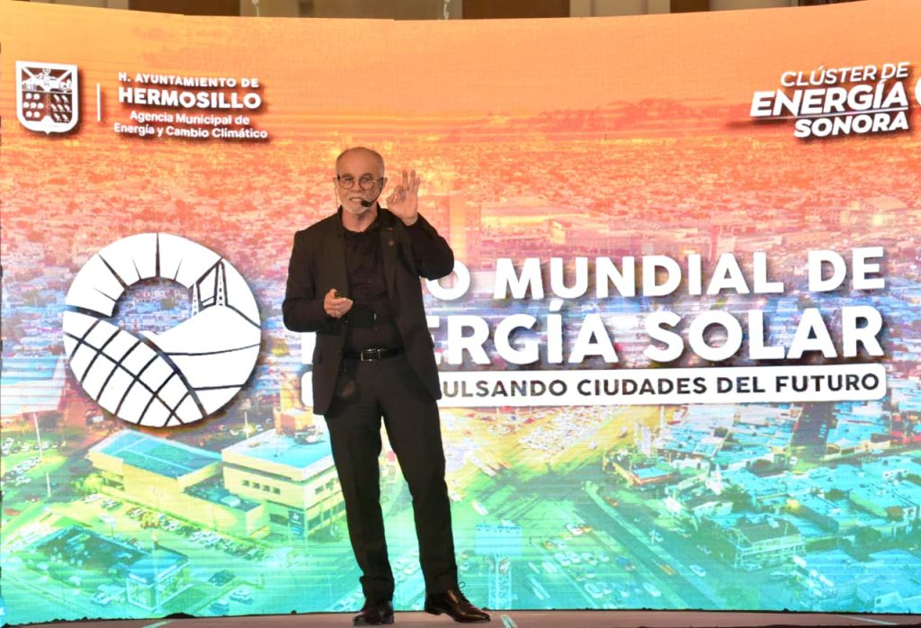Hermosillo, Sonora; 16 de octubre de 2025.El urbanista y científico Carlos Moreno, reconocido internacionalmente por el concepto de “Ciudades de 15 Minutos”, participó en el Foro Mundial de Energía Solar 2025 con una conferencia magistral sobre cómo crear ciudades más sostenibles, habitables y humanas.