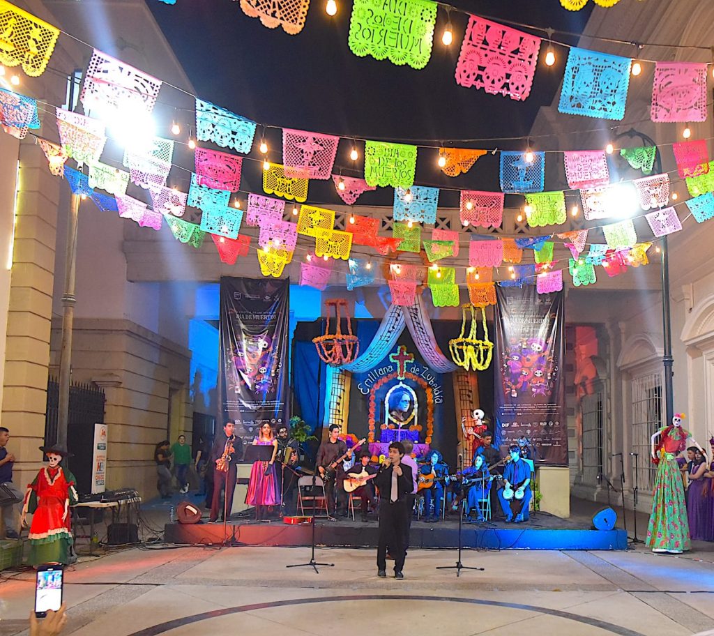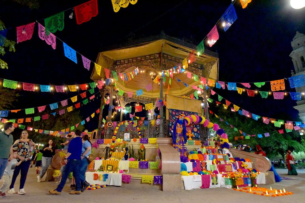 Hermosillo, Sonora; noviembre, 2023.- Las actividades del V Festival Tradicional del Día de Muertos que el Ayuntamiento de Hermosillo organiza a través del Instituto Municipal de Cultura y Arte (IMCA) continuarán este sábado 4 y domingo 5 de noviembre en el Callejón Velasco y Plaza Zaragoza cuya gran ofrenda es dedicada a la compositora Emiliana de Zubeldía.
