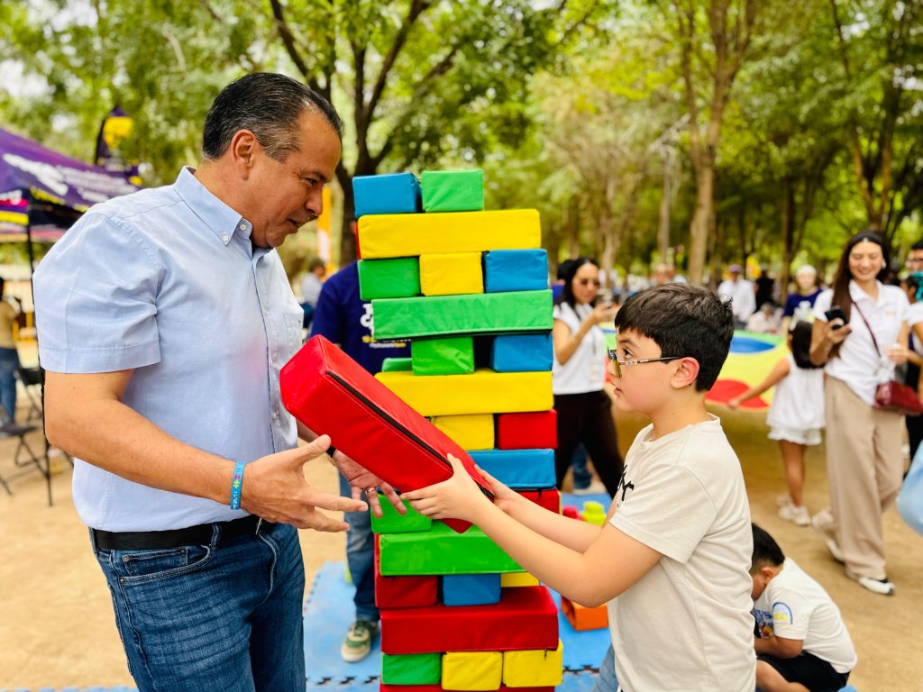 El alcalde Antonio «Toño» Astiazarán y su esposa Patricia Ruibal, presidenta de DIF Hermosillo, recorrieron las 21 estaciones sensoriales donde los pequeños pudieron experimentar texturas, juegos gigantes, burbujas y actividades artísticas en un ambiente seguro y cálido.