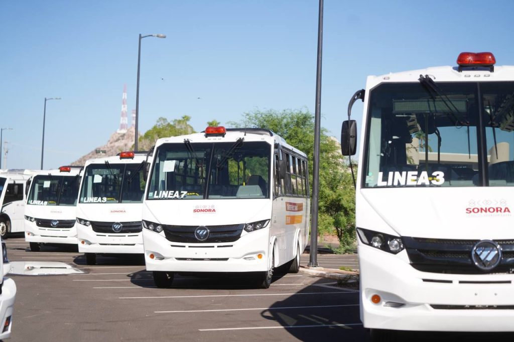 - Cajeme: 31 camiones (20 concesionarios + 11 adquiridos por el estado y operados por el Ayuntamiento). Inversión conjunta de 91 MDP, beneficio para 73 mil usuarios.