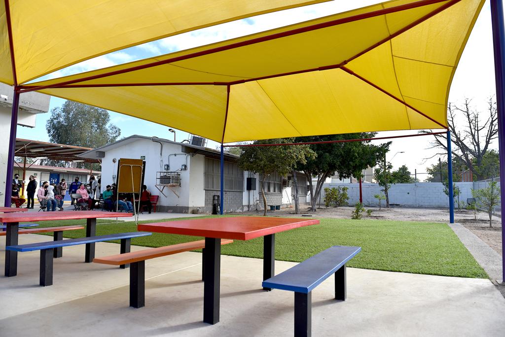 La directora del plantel, Nahita Raquel Ruiz Anaya, agradeció por establecer el lazo comunidad-gobierno para obtener un espacio digno para 80 niños donde podrán tomar sus alimentos al aire libre ante la emergencia sanitaria, así como para sus actividades físicas y de esparcimiento.