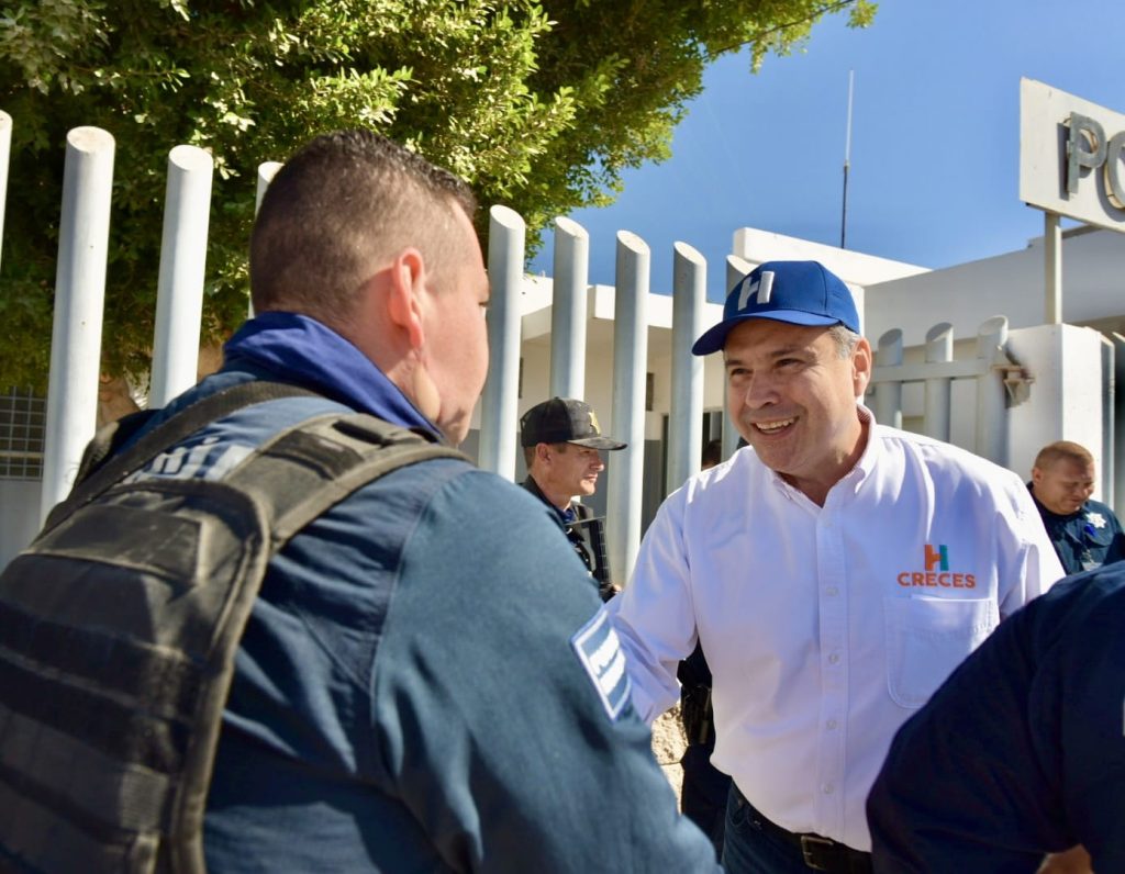 Durante el encuentro con elementos policiales anunció la llegada de patrullas que serán asignadas a las comisarías de Bahía de Kino y Poblado Miguel Alemán para fortalecer la seguridad en el municipio.