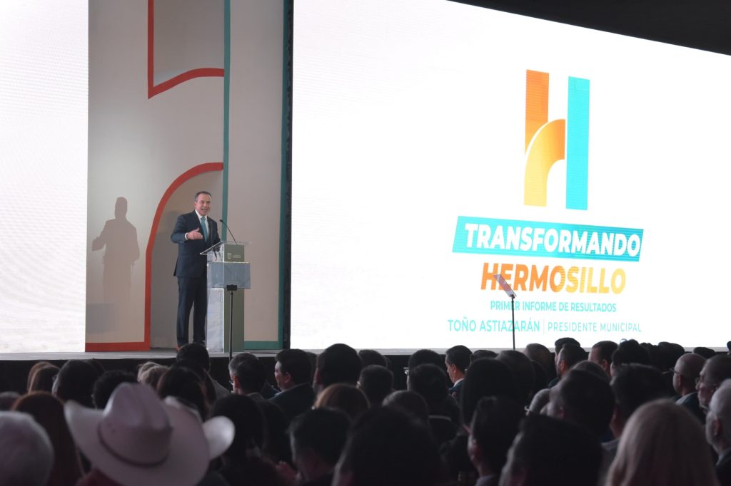 Hermosillo, Sonora; 19 de septiembre de 2025.-Gracias al trabajo en equipo con las y los ciudadanos, Hermosillo hoy vive una transformación que se nota y se siente, afirmó el presidente municipal Antonio “Toño” Astiazarán Gutiérrez durante su Primer Informe de Resultados, en el que presentó avances en seguridad, energías limpias, agua, infraestructura, deporte e inclusión social.