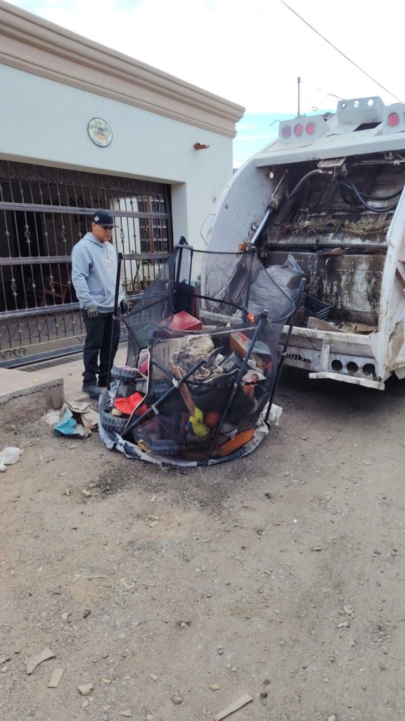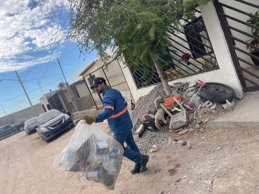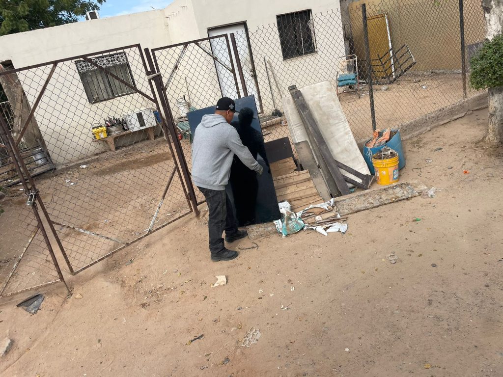 Personal de Salud Municipal y Servicios Públicos de Hermosillo recorrió casa por casa las calles Pilares, San José de García, Américo Vespucio y Santa Rosa durante este jueves y viernes. Los vecinos, bien coordinados, sacaron a las banquetas desde muebles viejos hasta electrodomésticos que solo servían de nido para animales y suciedad.