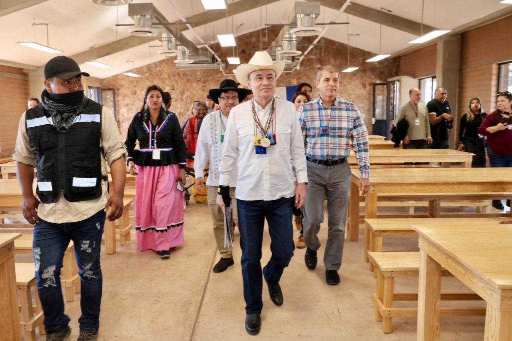 Punta Chueca, Sonora; 20 de diciembre de 2025.– En el marco del Plan de Justicia para el Pueblo Seri, el gobernador Alfonso Durazo Montaño, junto al director general del Instituto Nacional de los Pueblos Indígenas (INPI), Adelfo Regino Montes, inauguró el Comedor Escolar de la Niñez Indígena “Hant An Icoohitim Socaaix” y las nuevas instalaciones del Telebachillerato Comunitario de Punta Chueca, con una inversión superior a 42 millones de pesos.