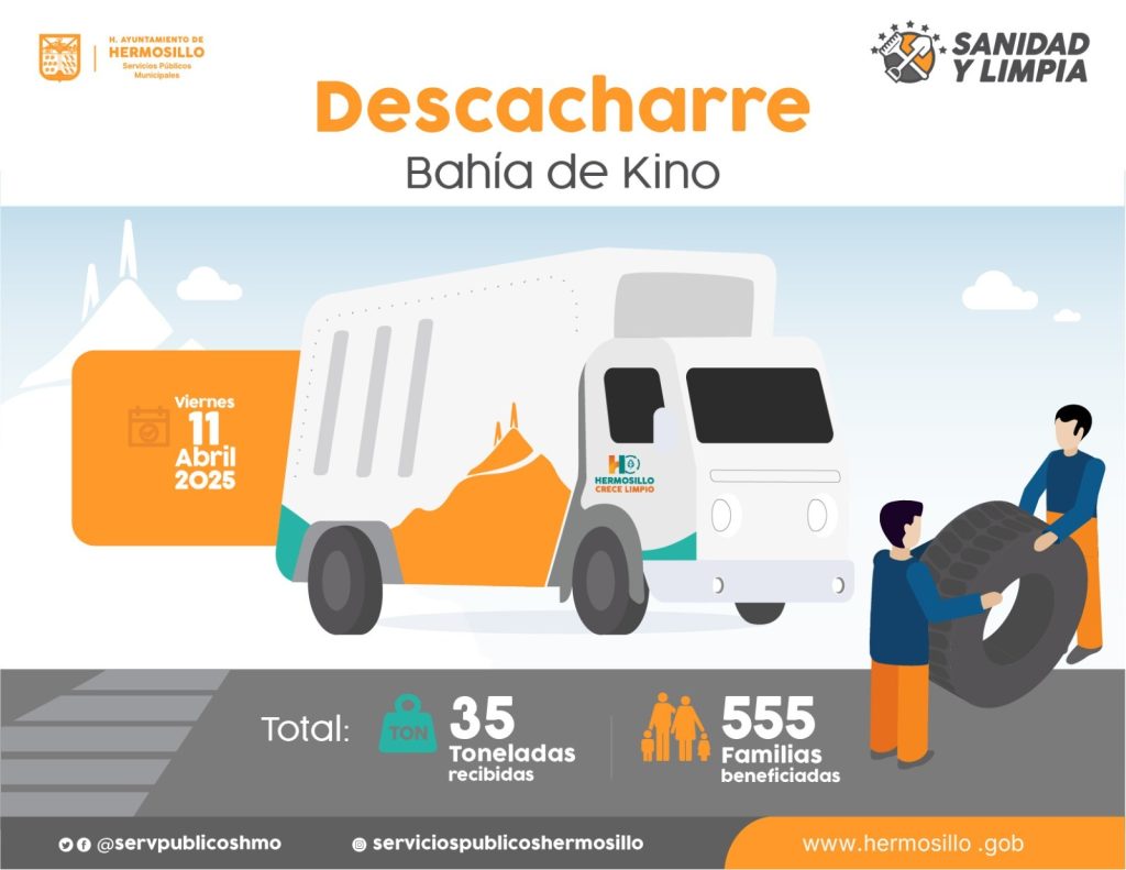 Hermosillo, Sonora; 12 de abril, 2025. El Ayuntamiento de Hermosillo recolectó más de 35 toneladas de basura y cacharros en una gran jornada de descacharre que benefició directamente a 555 familias de la comunidad.