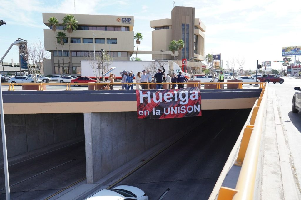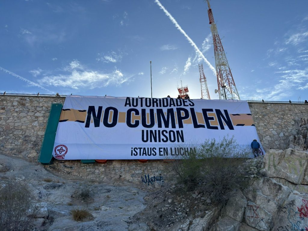 Hermosillo, Sonora; 8 de abril de 2026.- El Sindicato de Trabajadores Académicos de la Universidad de Sonora (STAUS) llevó a cabo la instalación de lonas en distintos puntos estratégicos de la ciudad, como parte de las acciones para visibilizar su exigencia de una revisión salarial justa.