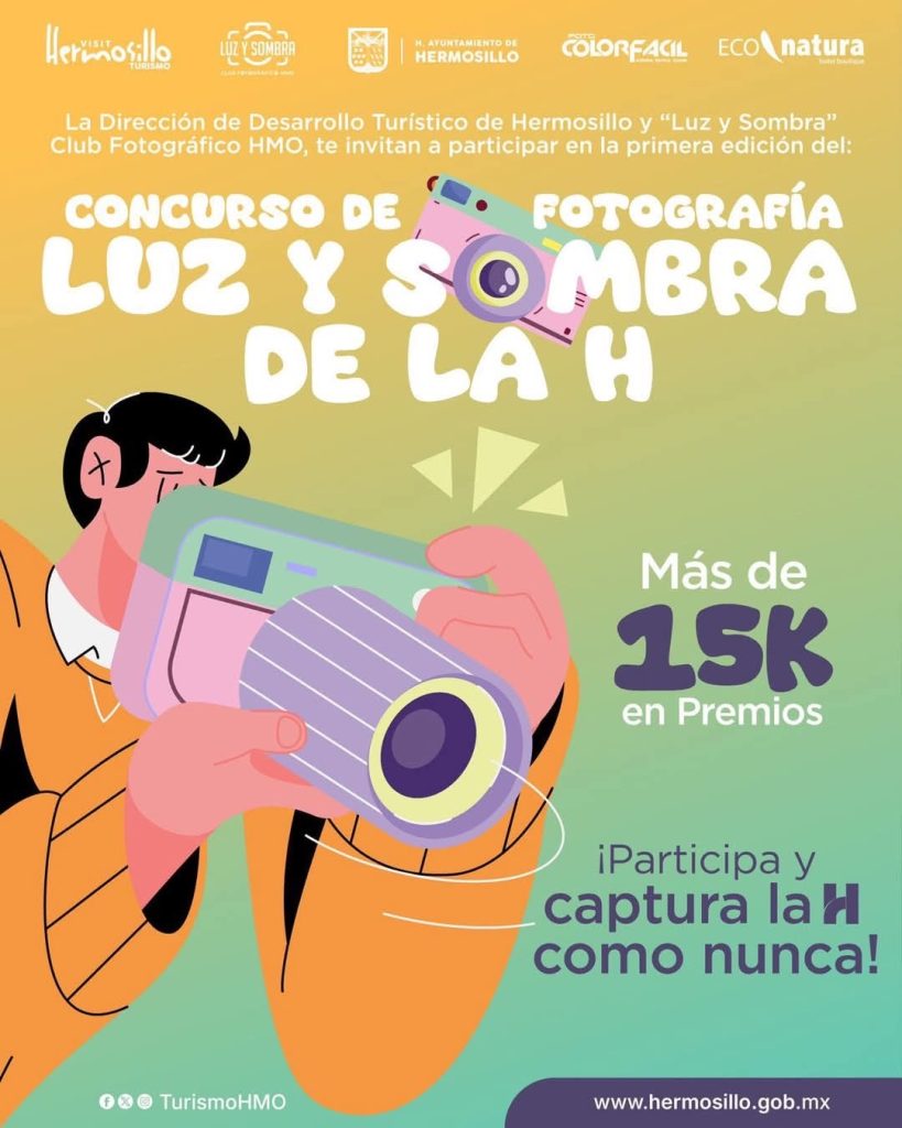 Hermosillo, Sonora; 19 de julio de 2025.- El Ayuntamiento de Hermosillo, a través de la Agencia Municipal de Desarrollo Económico (AMDE) y en colaboración con el Club Fotográfico “Luz y Sombra”, lanzó la convocatoria al concurso “Luz y Sombra de La H”, dirigido a fotógrafos y aficionados que deseen capturar la esencia, el orgullo y la belleza de la capital sonorense.