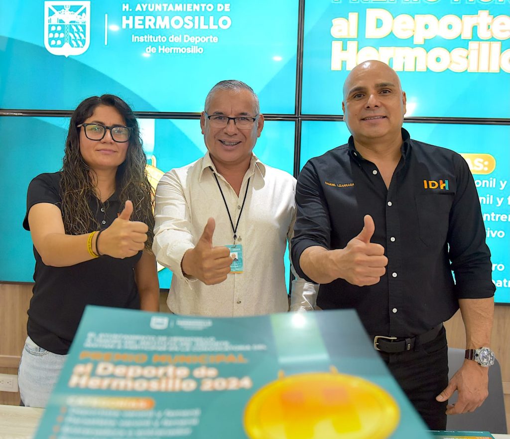 Lo acompañaron Samuel Lizárraga y María Guadalupe Bermúdez, director deportivo y coordinadora deportiva del IDH respectivamente, quienes detallaron que los aspirantes al galardón deben acudir personalmente a las oficinas de la dependencia en el complejo deportivo Nacameri, al gimnasio Juan Francisco “El Gallo” Estrada o a la Cancha 4, de la colonia Olivares, de las 8:00 a las 14:00 horas.