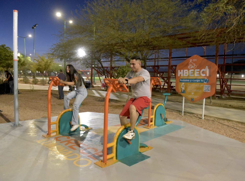 Hermosillo, Sonora; 1 de abril de 2025. El alcalde Antonio Astiazarán Gutiérrez presentó BEECI, un innovador sistema de bicicletas estacionarias públicas que generan electricidad al pedalear, promoviendo el deporte y el uso de energías limpias.