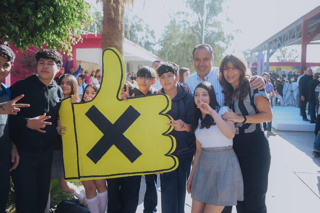 Hermosillo, Sonora; 4 de abril de 2025.– El presidente municipal Antonio Astiazarán y su esposa Patricia Ruibal, presidenta de DIF Hermosillo, visitaron la Escuela Secundaria General No. 8 Nezahualcóyotl para constatar la implementación del programa “Advertencia” contra las adicciones, que beneficia a más de 600 estudiantes del plantel.