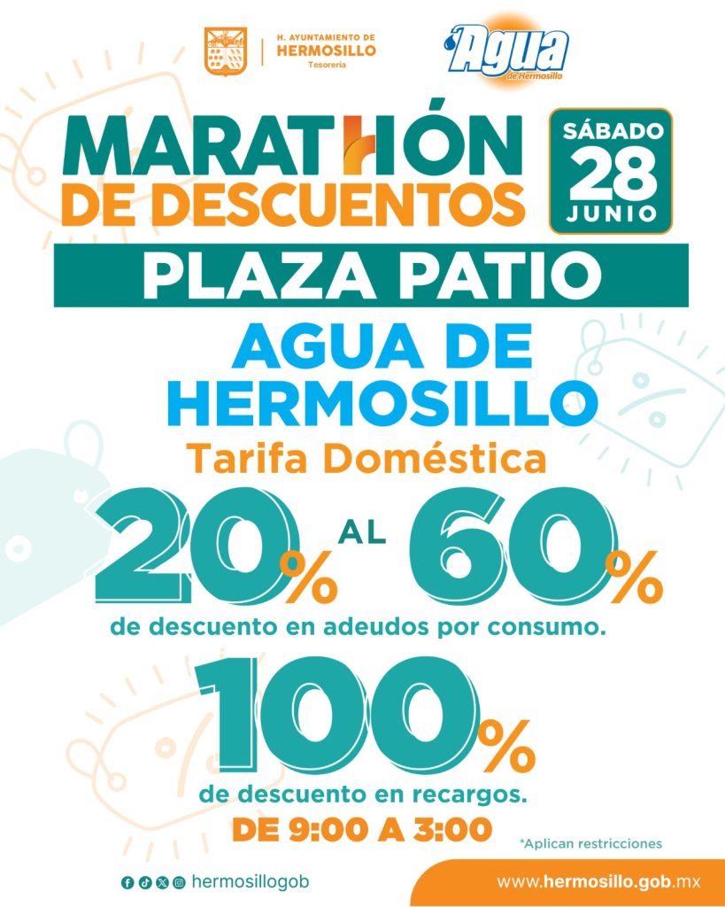 - 100% de descuento en recargos del servicio de Agua de Hermosillo