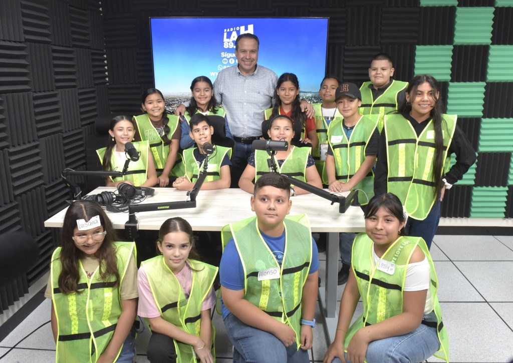 Como cierre de la jornada, las niñas y los niños visitaron las instalaciones de Radio La H, la primera emisora pública municipal de México, donde fueron guiados por el propio Toño Astiazarán.
