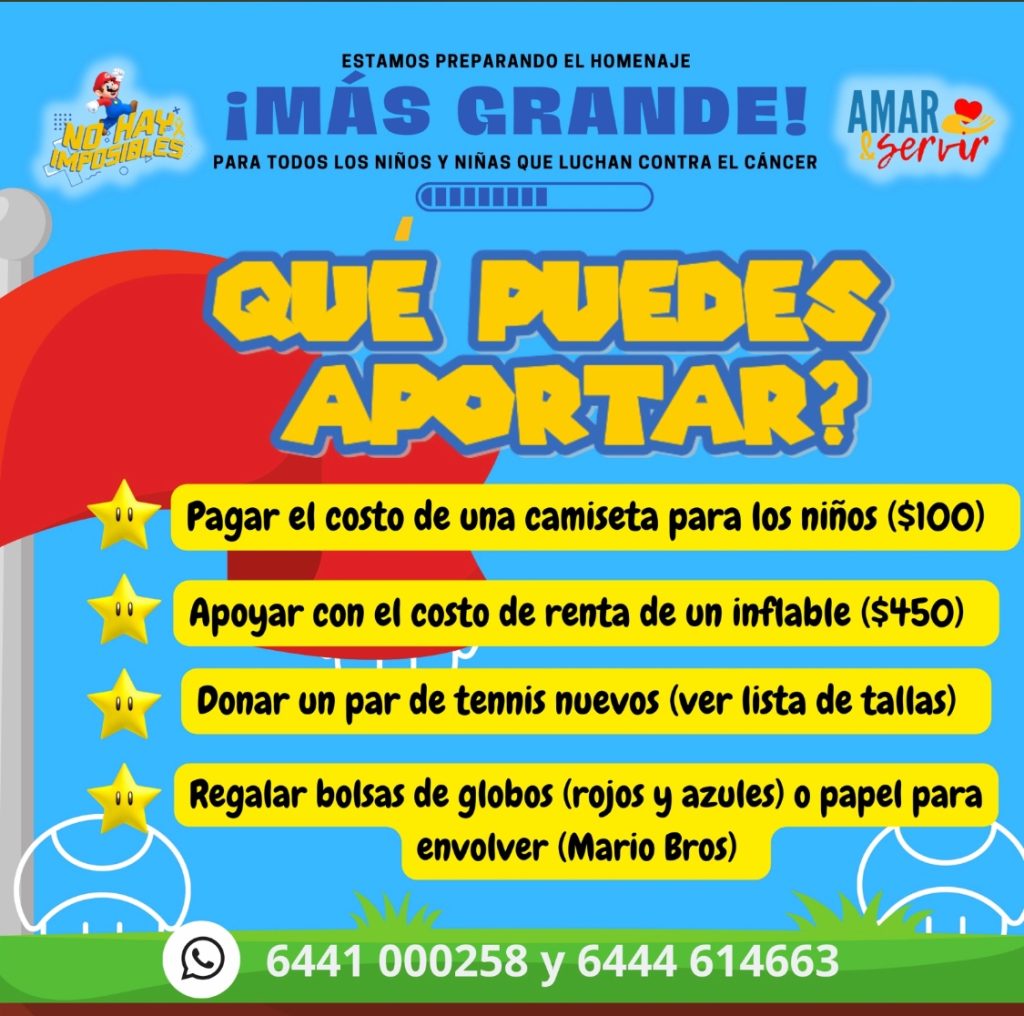 Las personas que quieran participar donando pasteles, piñatas, dulces, regalos o pares de tennis se pueden comunicar via mensaje de WhatsApp al 6444 614663.