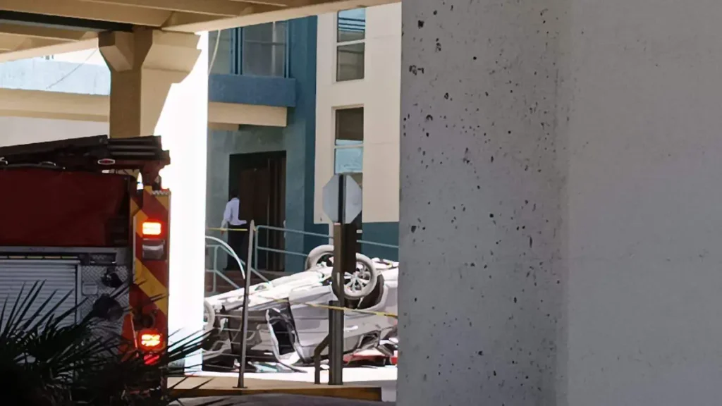 Hermosillo, Sonora; 30 de septiembre de 2025.- La mañana de este martes se registró un aparatoso accidente en el estacionamiento del hospital privado San José, en Hermosillo, cuando un vehículo se precipitó desde el segundo piso con una mujer de la tercera edad a bordo.