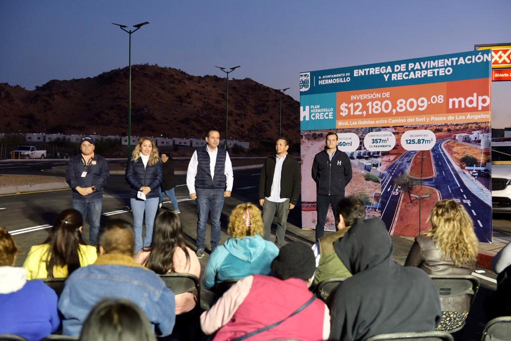 Toño Astiazarán entregó la obra de más de 14 millones de pesos de inversión que contempla pavimentación desde el bulevar Camino del Seri hasta Paseo de los Ángeles, carril de ciclo vía, instalación de tubería de agua potable, sanitaria e iluminación del tramo para más seguridad de quienes lo transitan.