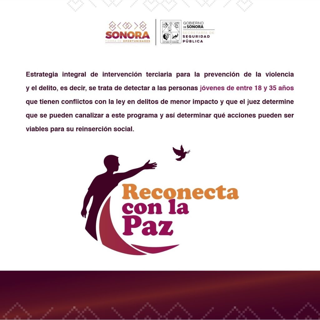 Hermosillo, Sonora; 30 de octubre de 2025.- Con el propósito de contribuir a la reinserción social plena de personas primodelincuentes y prevenir la reincidencia en conductas delictivas, el Gobierno de Sonora, a través de la Secretaría de Seguridad Pública (SSP), puso en marcha el programa “Reconecta con la Paz”.