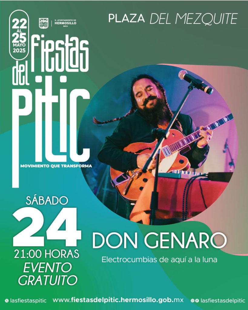A las 19:00 horas del sábado 24 de mayo el escenario de la Plaza del Mezquite recibirá al grupo musical El Pony Express y una hora después será noche de salsa con la Orquesta Pacífico, seguido de las electrocumbias de Don Genaro, a las 21:00 horas, mencionó la directora del IMCA.