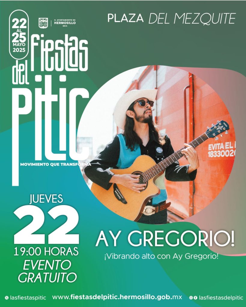El domingo siguiente, último día de Fiestas del Pitic 2025, este foro recibirá a las 19:00 horas a Nate & The Gems que presentará el espectáculo Atarantado Tour y el grupo Hoy Tequila su show Cactus City a las 20:00 horas, mientras que la cantante hermosillense Adriana Moroyoqui protagonizará el concierto de cierre de la noche, reveló Marianna González.