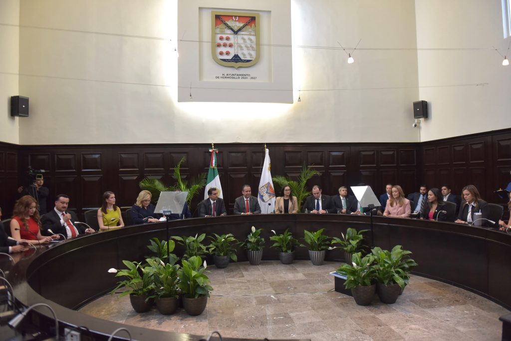 En sesión solemne de cabildo, asistieron Froylán Gámez Gamboa, secretario de Educación y Cultura, en representación del gobernador del Estado, Alfonso Durazo Montaño; la diputada Iris Sánchez Chiu, en representación del Congreso del Estado de Sonora y el magistrado Eduardo Sánchez Moreno, representante del Supremo Tribunal de Justicia del Estado de Sonora, a quienes Astiazarán Gutiérrez entregó los tomos que contienen el Informe 2024-2025.