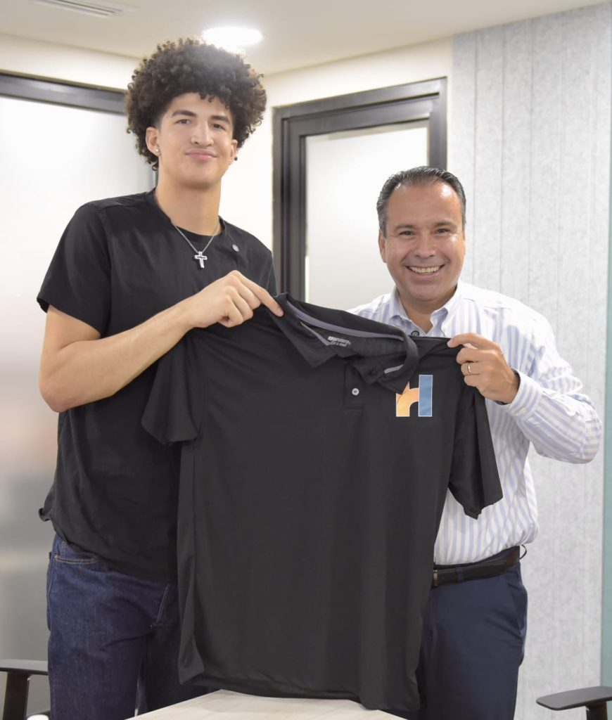 “Yo te quería saludar y decirte que estamos muy orgullosos de ti, la verdad es que lo que has logrado es admirable y estoy seguro que el futuro que te espera todavía es más prometedor”, expresó Toño Astiazarán al joven basquetbolista Karim Hiram López Moncada, a quien recibió junto con integrantes de su familia y directivos del Instituto del Deporte de Hermosillo (IDH).