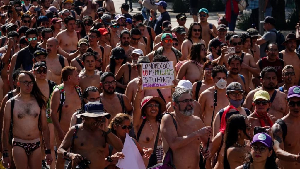 Ciudad de México; junio 4 del 2025.– Ni la amenaza de lluvia impidió que la tercera edición del Día al Desnudo en CDMX fuera todo un éxito. Desde temprano el pasado sábado, decenas de personas se despojaron de la ropa —y de los prejuicios— para participar en esta manifestación que busca romper tabúes, promover la aceptación corporal y exigir espacios seguros para el nudismo en la capital.