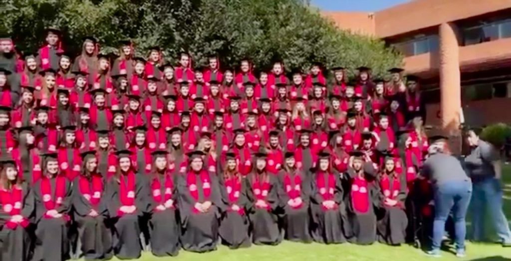 Ciudad de México, 27 de febrero del 2026. Lo que sería una foto de generación terminó en accidente. Una estructura improvisada colapsó mientras estudiantes de la Universidad Iberoamericana posaban con toga y birrete.