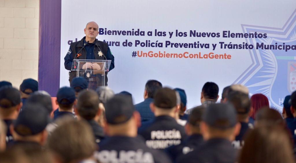 Previo al pase de lista de nuevos elementos, el Comisario de la Jefatura de Policía Preventiva y Tránsito Municipal, Manuel Emilio Hoyos llamó a continuar con su preparación, como con el servicio profesional de carrera que abone a su progreso y la certificación de la Policía Municipal.