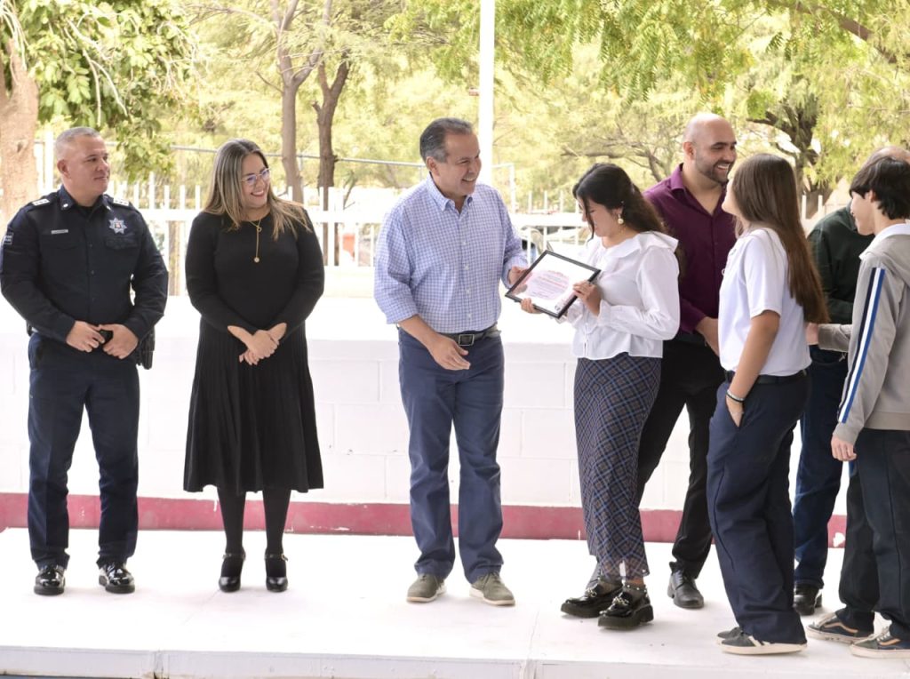 Pero el premio no fue solo el aplauso. La escuela formalizó su entrada al programa Reciclase, recibiendo una estación de reciclaje completa, un contenedor de gran capacidad y 20 árboles nativos para reforestar el plantel. El alcalde aprovechó para mostrarles las patrullas eléctricas, reforzando la idea de que Hermosillo está apostando fuerte por la tecnología sustentable.