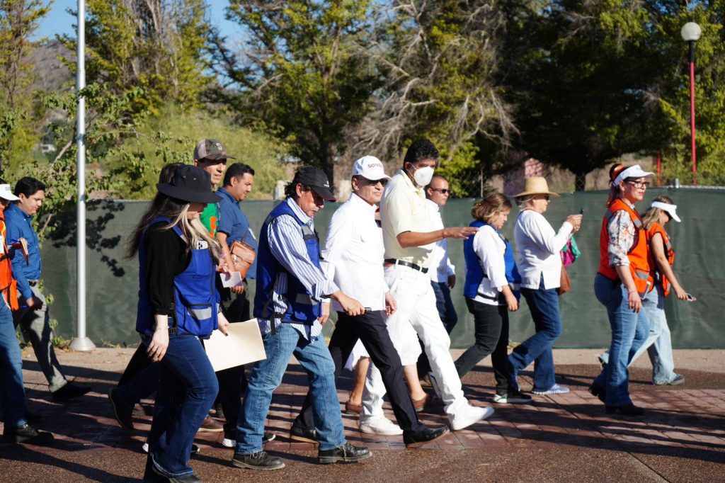 Acompañado por Paulina Ocaña Encinas, jefa de la Oficina del Ejecutivo Estatal; Alejandra Castro Valencia, secretaria de Infraestructura y Desarrollo Urbano (Sidur); y representantes de la sociedad civil, el mandatario estatal realizó un recorrido de supervisión para constatar los avances de la obra, la cual contempla en esta primera etapa 10 hectáreas con infraestructura y 14.5 hectáreas con arboledas.