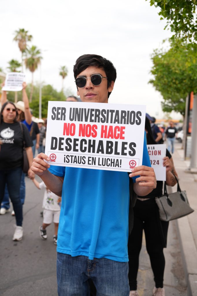 En un frente común que no se veía en años, ambos sindicatos marcharon brazo a brazo, dejando claro que el conflicto laboral no solo afecta a los trabajadores, sino que mantiene en vilo el futuro académico de miles de jóvenes sonorenses.